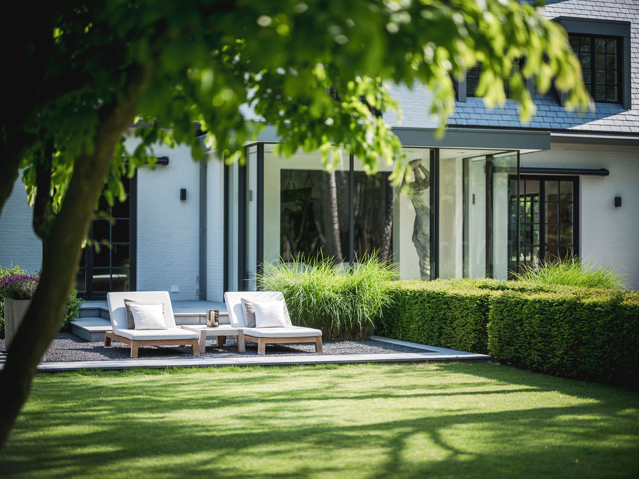 Onze tuinontwerpers creëren tuinen die een natuurlijke verlenging vormen van de woning, met doordachte zichtlijnen en seizoensgebonden beplanting.
